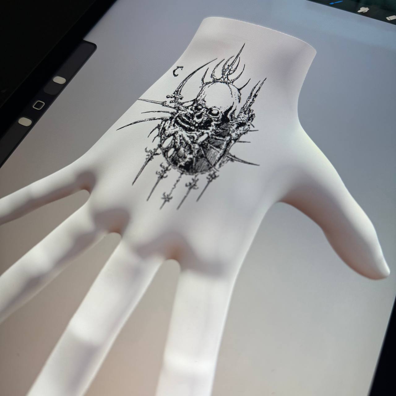 A finished tattoo design created in the cyber sigilism style. Digital symbols, distorted geometry, and encoded meaning.