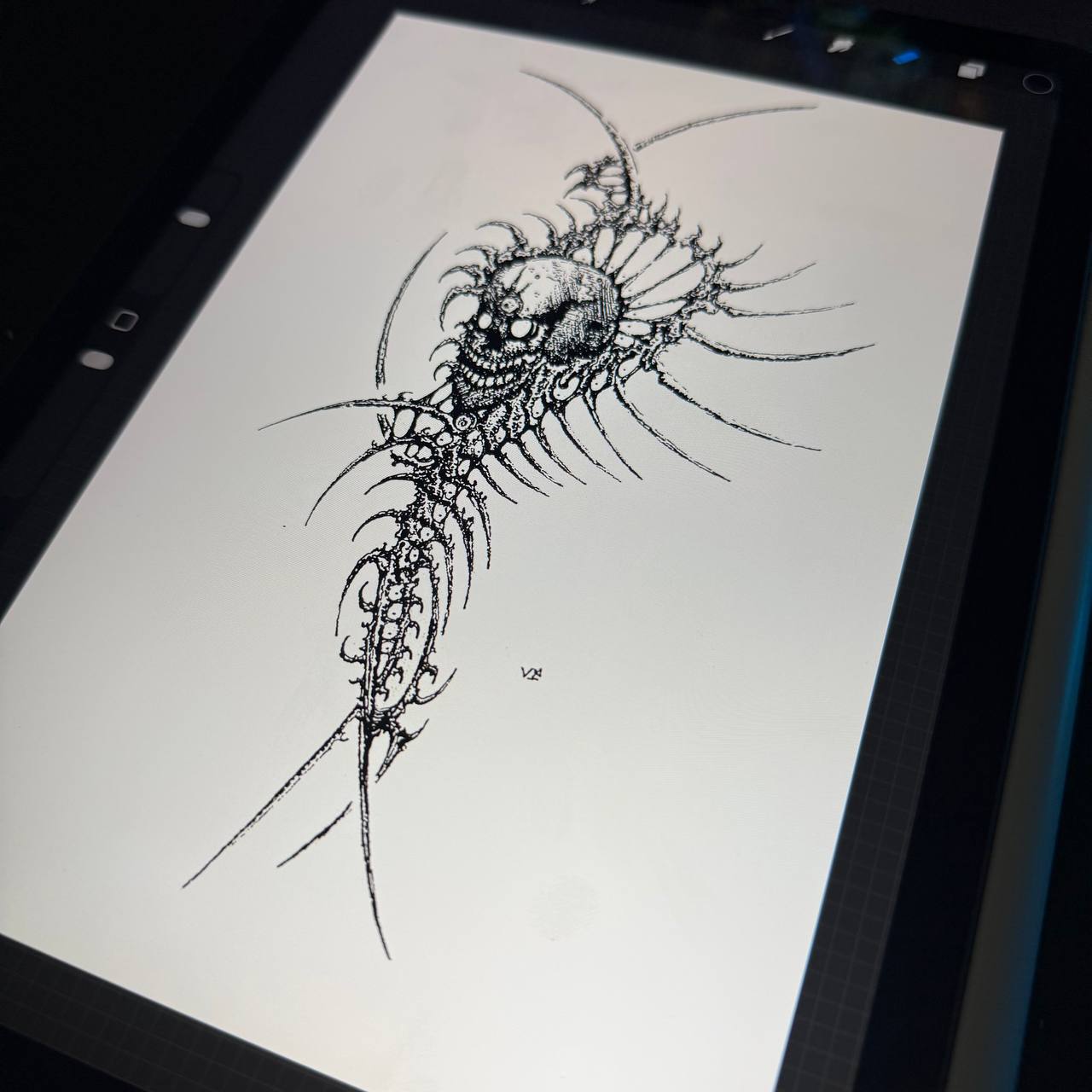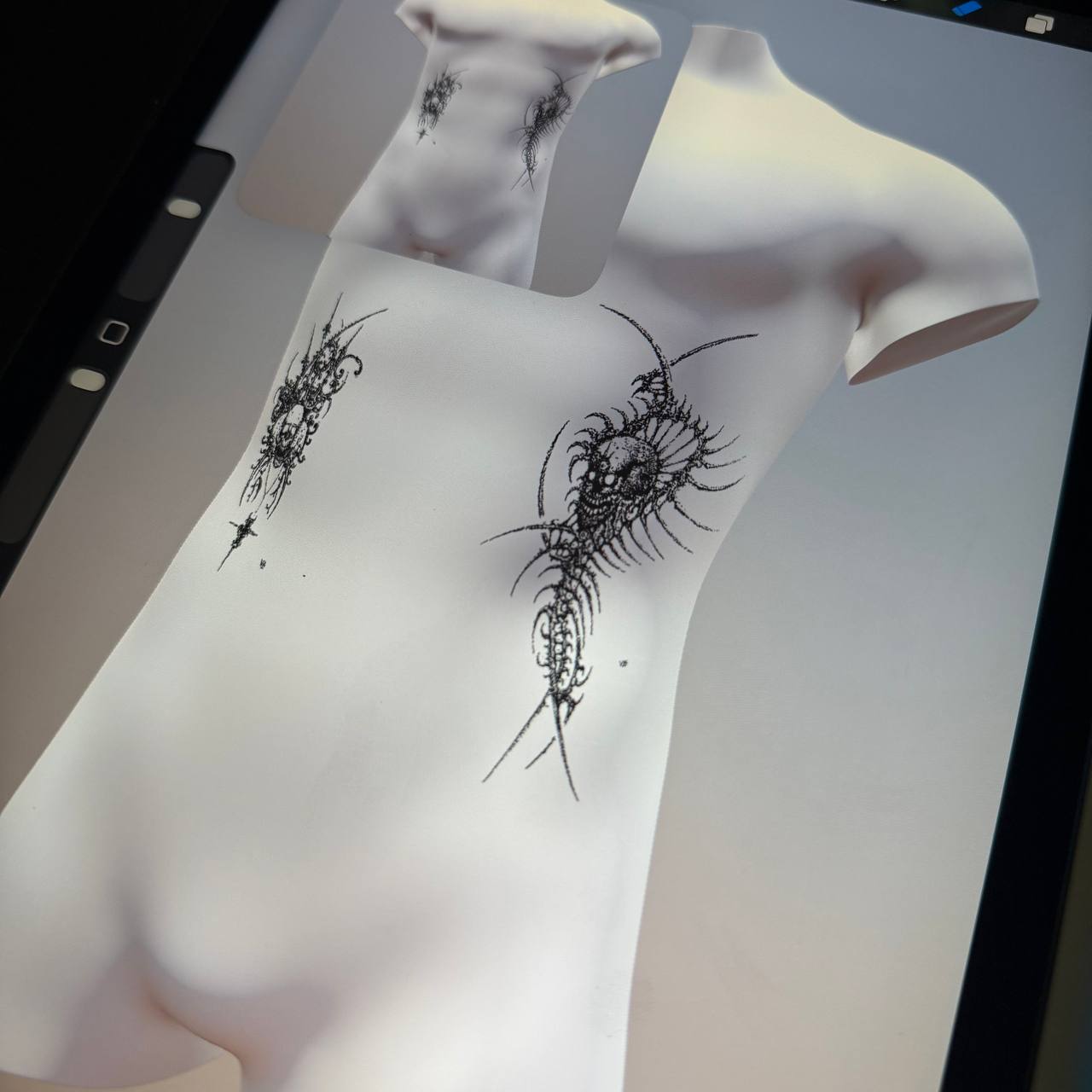 A finished tattoo design created in the cyber sigilism style. Digital symbols, distorted geometry, and encoded meaning.