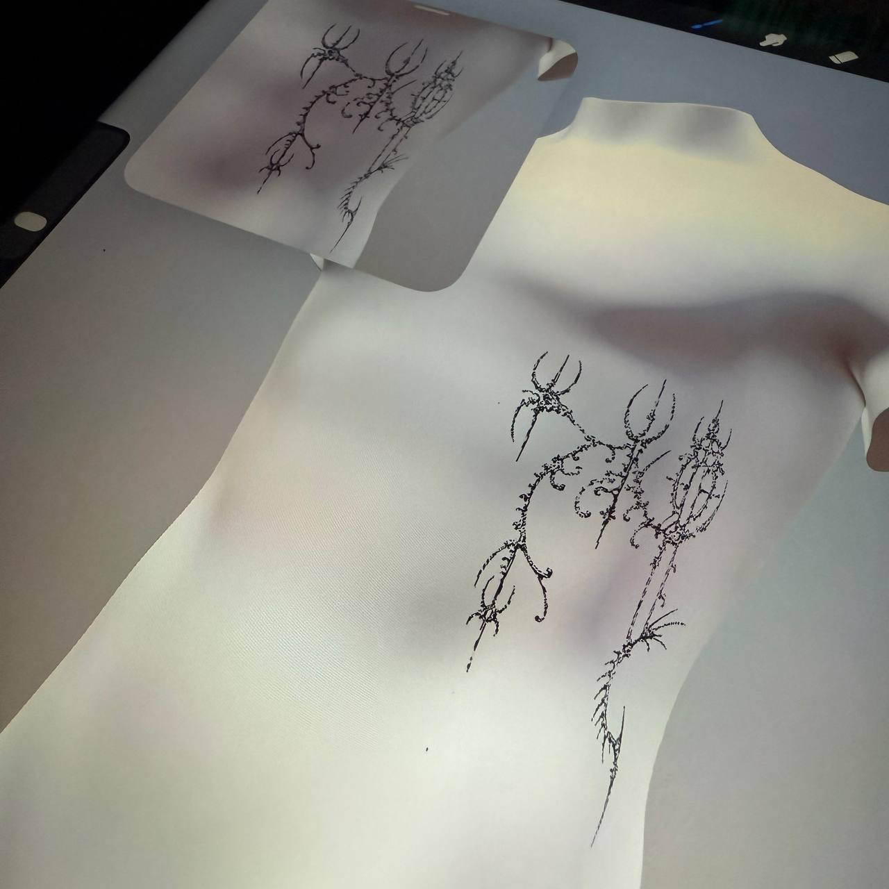 A finished tattoo design created in the cyber sigilism style. Digital symbols, distorted geometry, and encoded meaning.