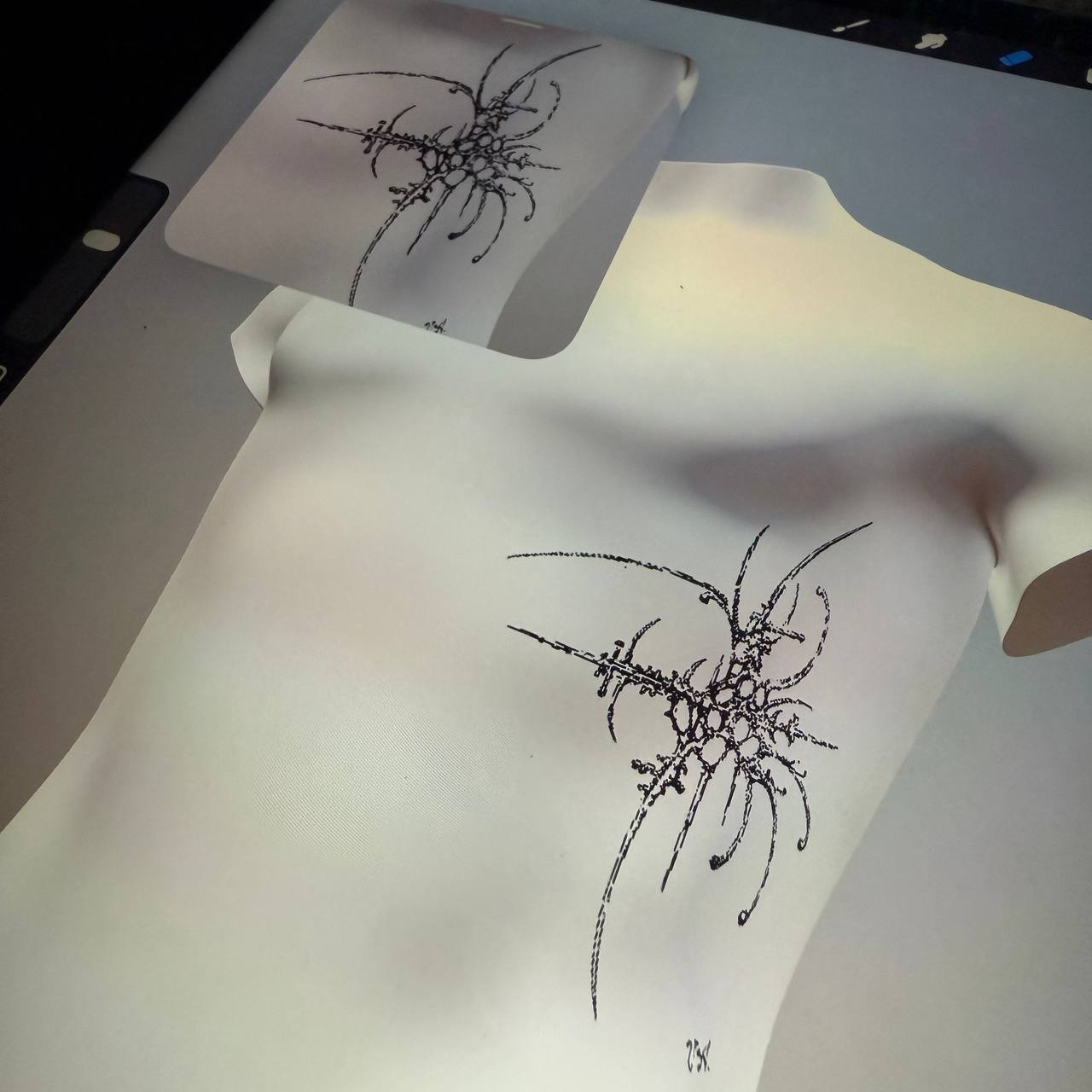 A finished tattoo design created in the cyber sigilism style. Digital symbols, distorted geometry, and encoded meaning.