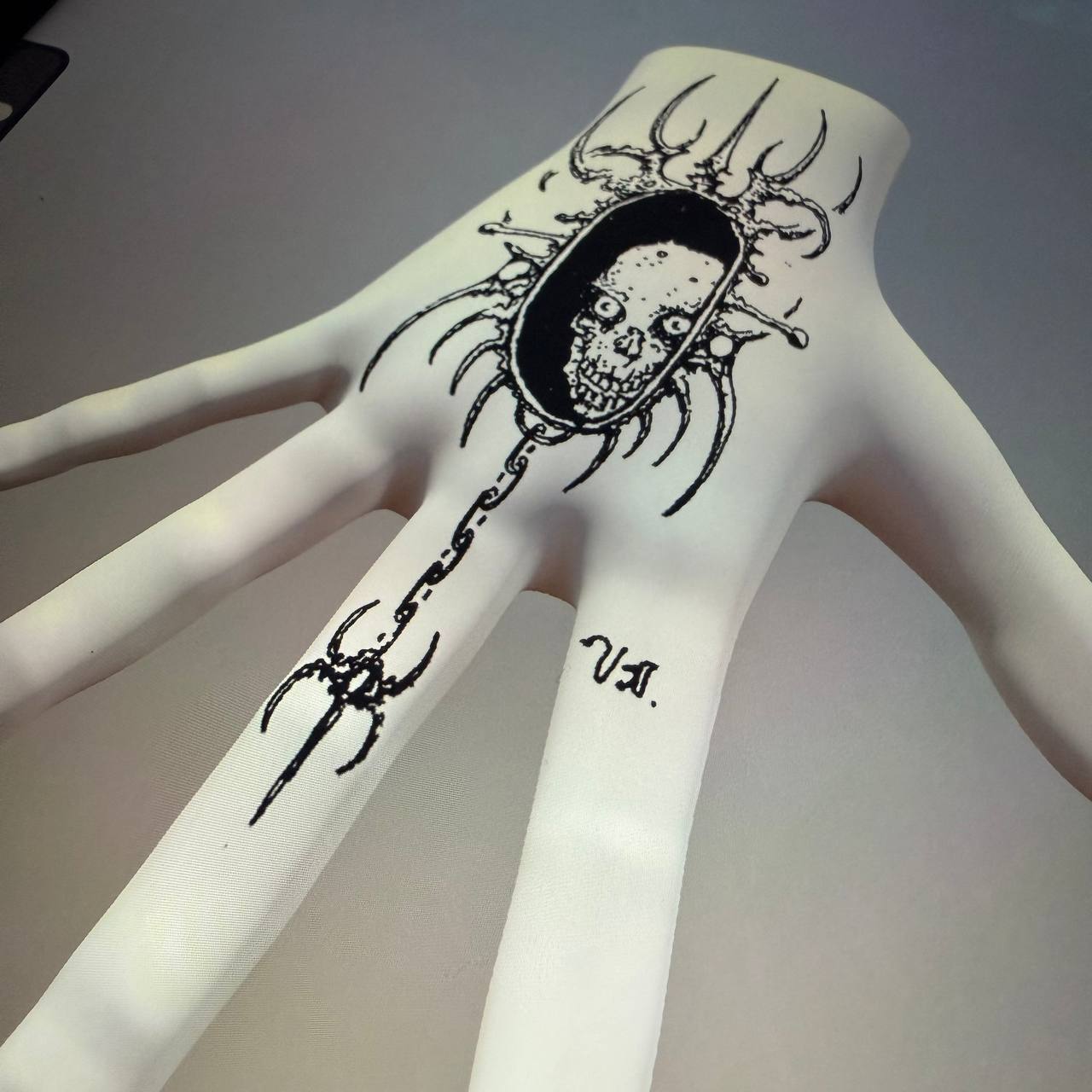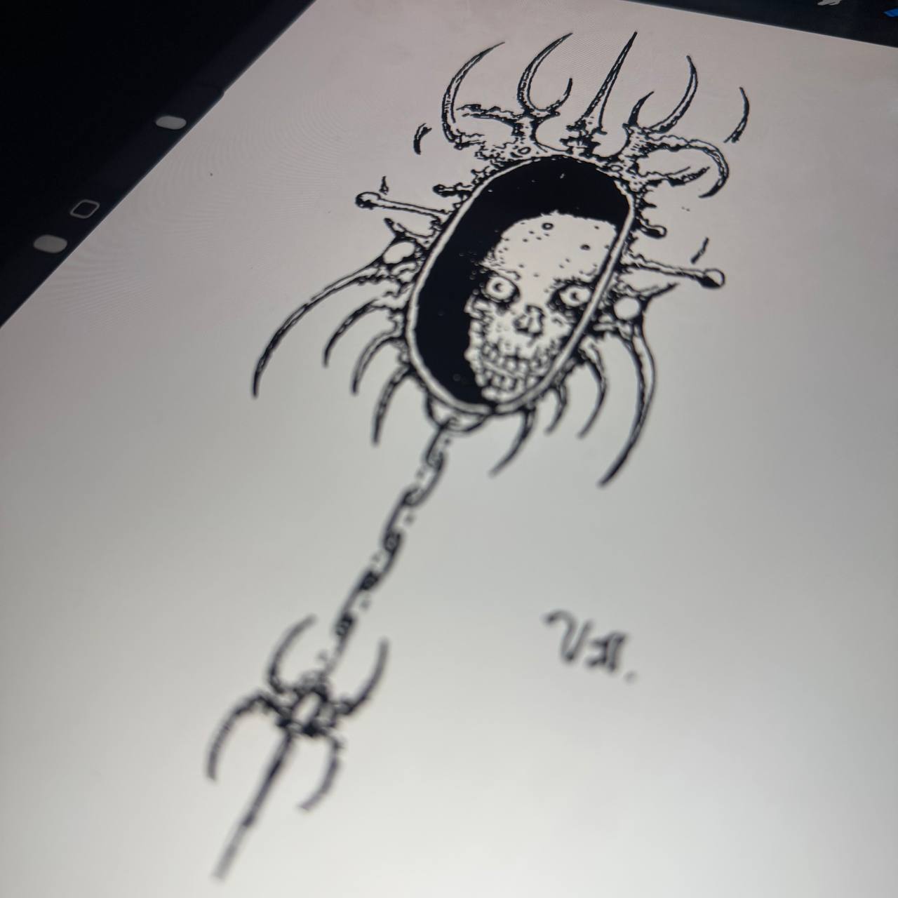 A finished tattoo design created in the cyber sigilism style. Digital symbols, distorted geometry, and encoded meaning.