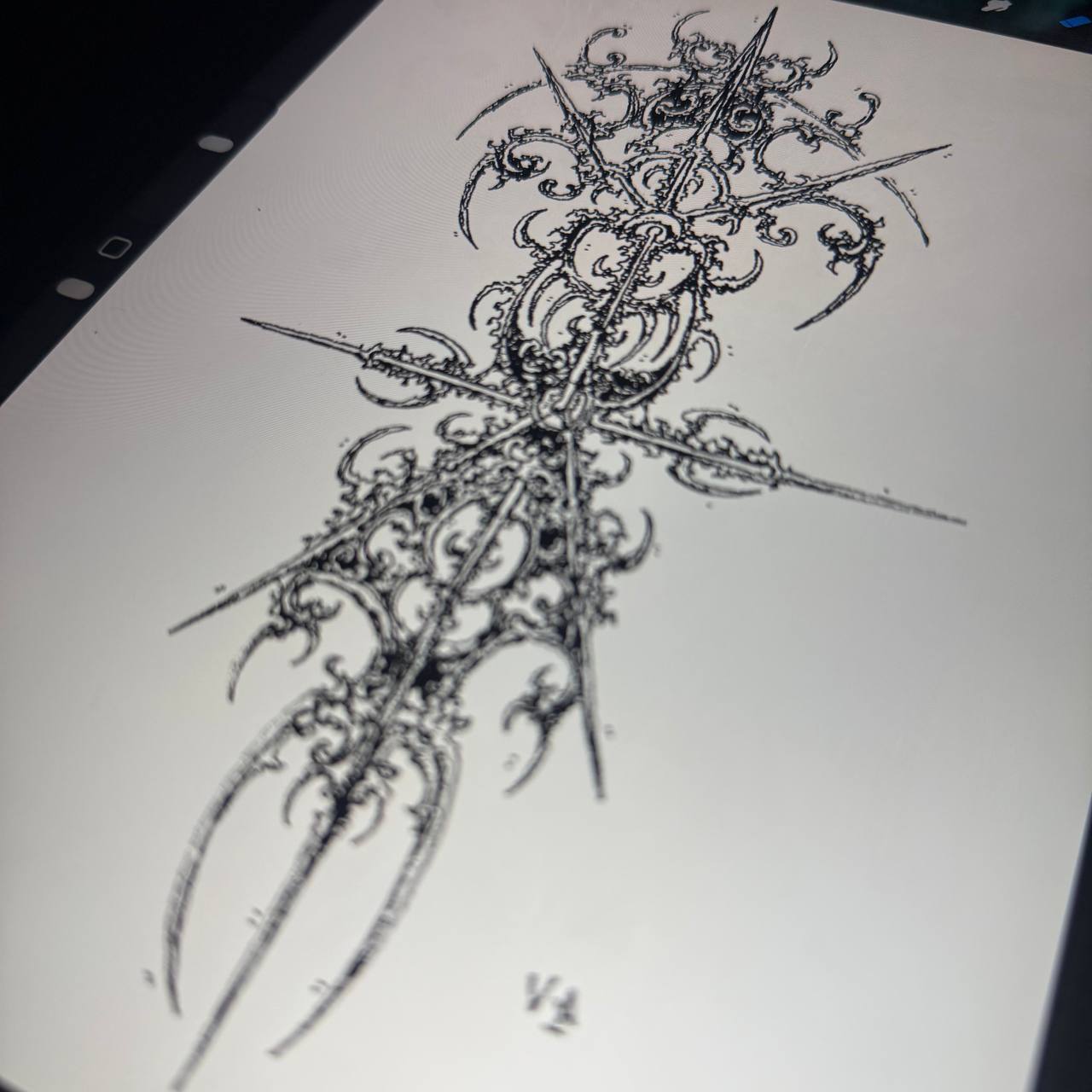 A finished tattoo design created in the cyber sigilism style. Digital symbols, distorted geometry, and encoded meaning.